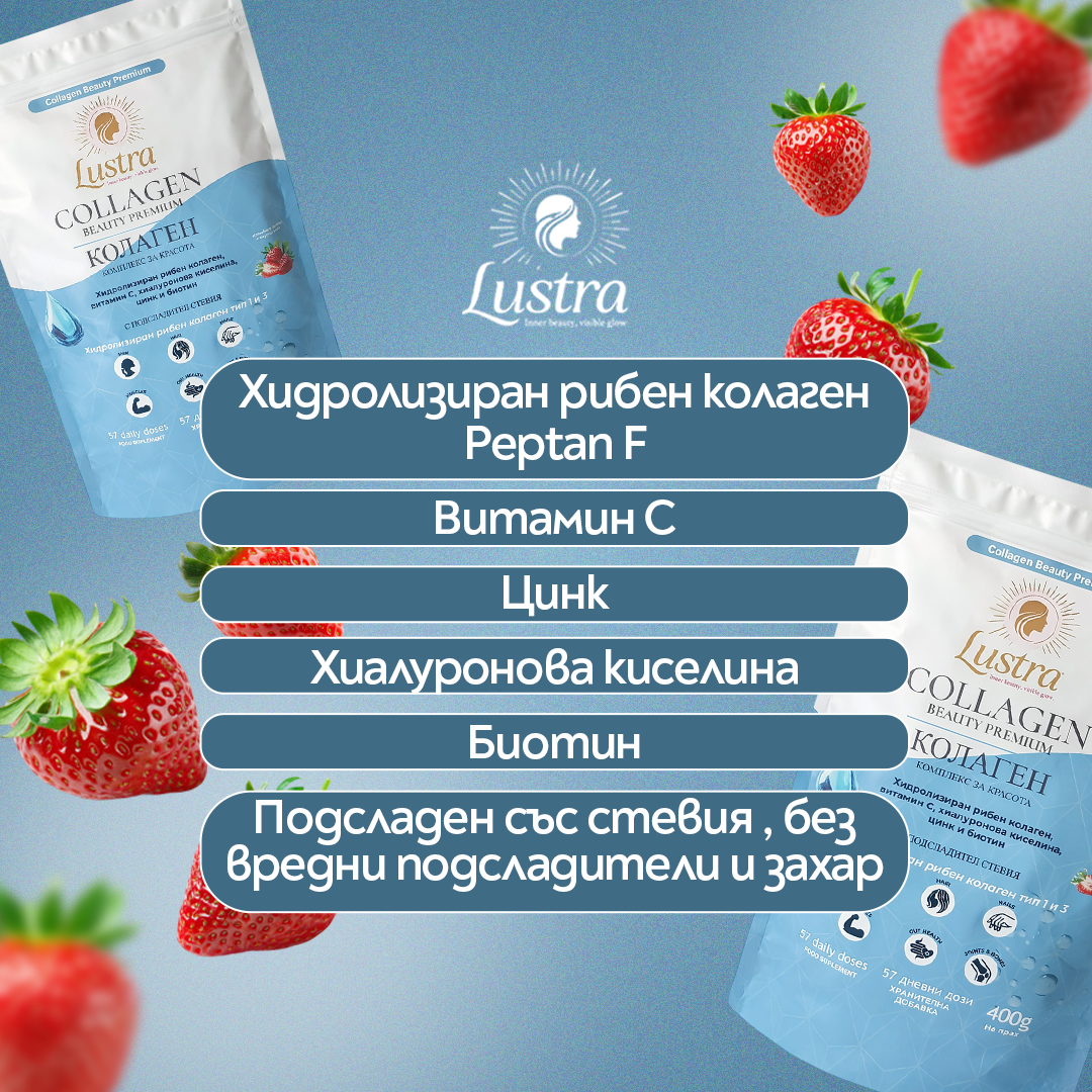 🍓 Хидролизиран рибен колаген пептиди – с висока степен на усвояемост. Подпомага за