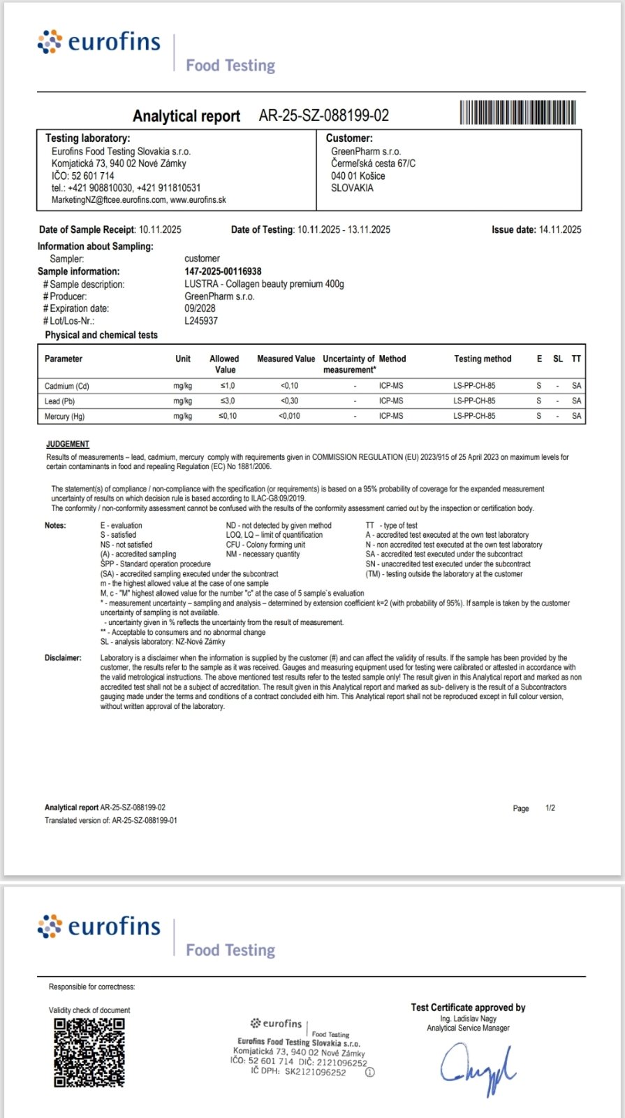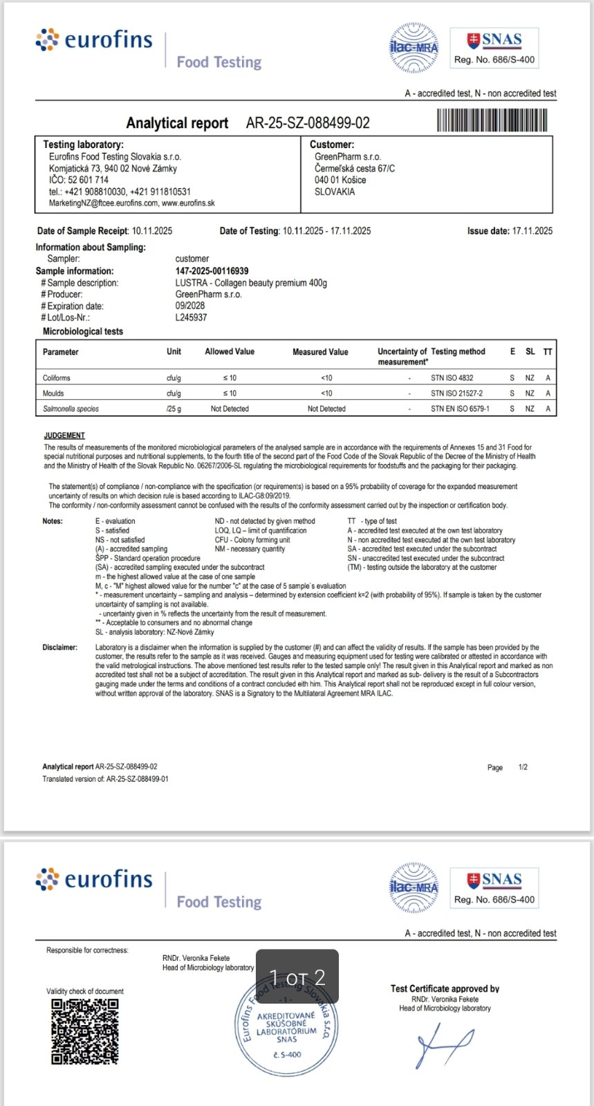 Колаген комплекс: Входящ номер: 22045 / дата на вписване: 15.10.2025