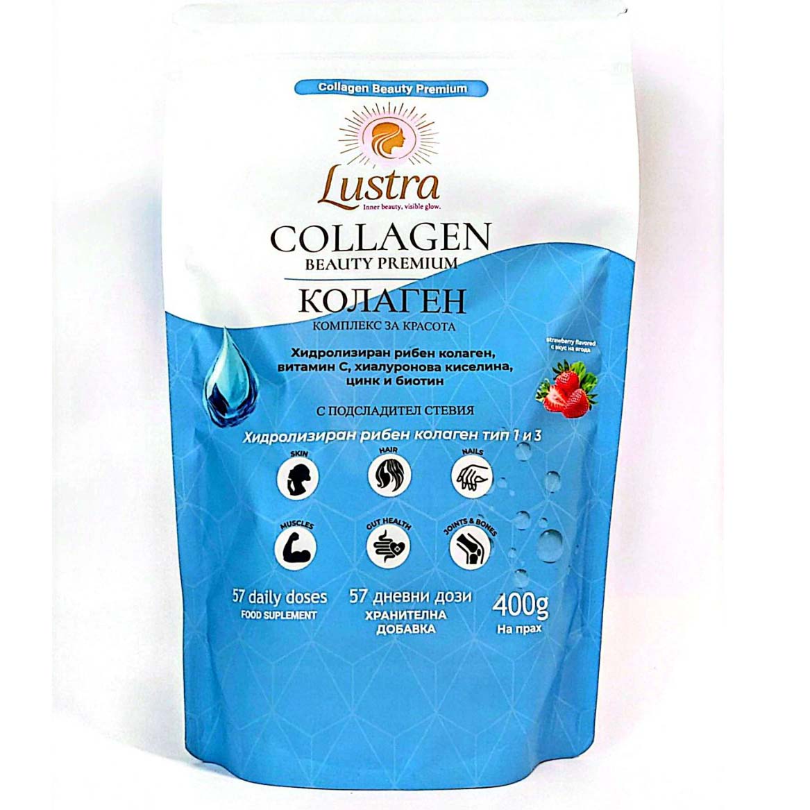 🍓 Хидролизиран рибен колаген пептиди – с висока степен на усвояемост. Подпомага за