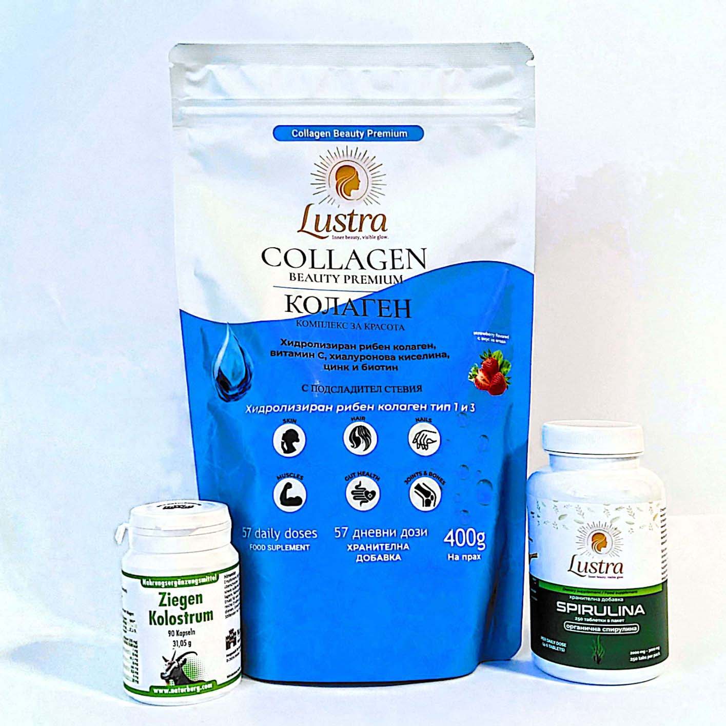 Пакет трио „Здраве и красота“ включва три взаимно допълващи се продукта, които съчетават всичко необходимо за подпомагането на това да бъдем здрави отвътре и да сияем отвън. Пакетът съдържа: