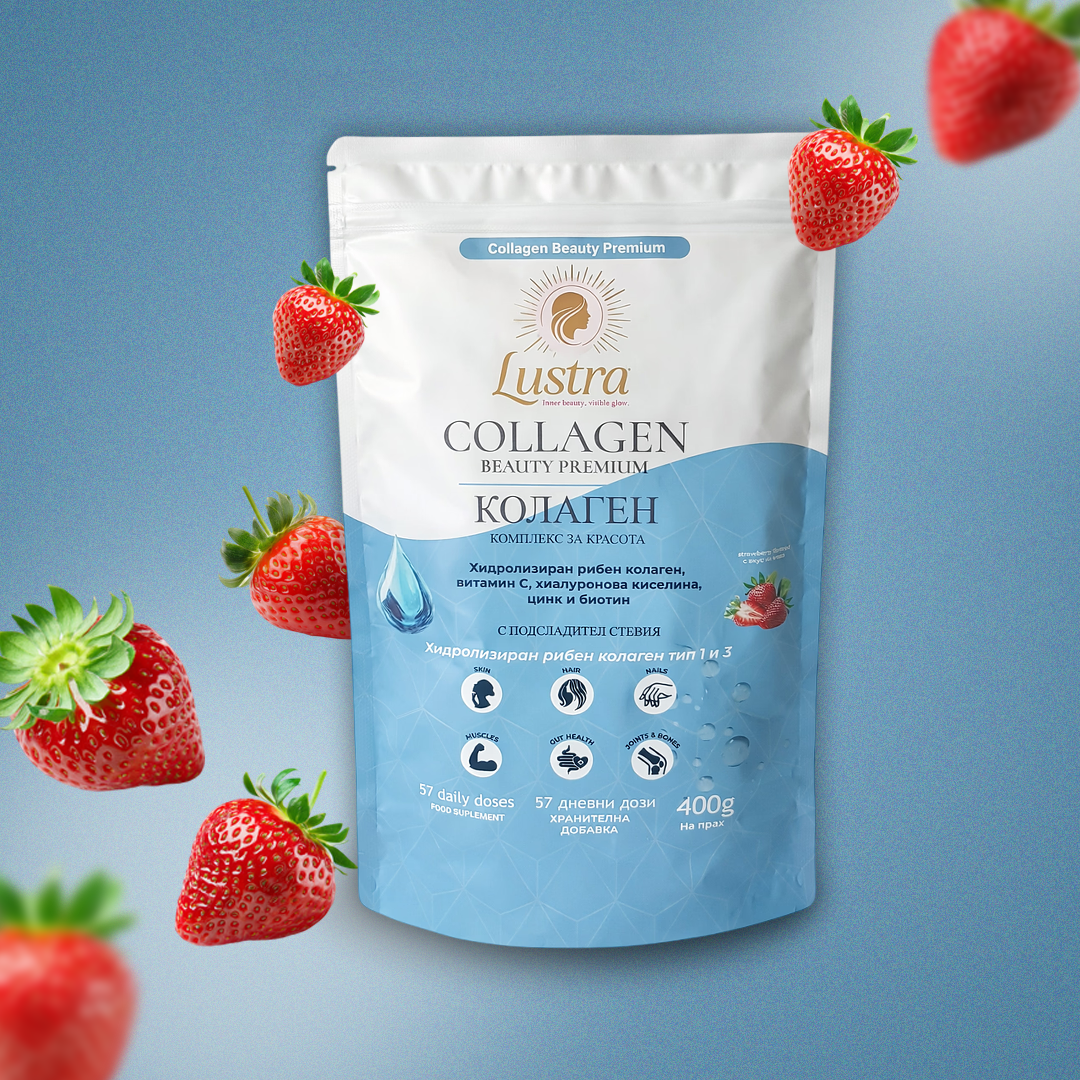 🍓 Хидролизиран рибен колаген пептиди тип 1 и тип3– с висока степен на усвояемост. Подпомага за